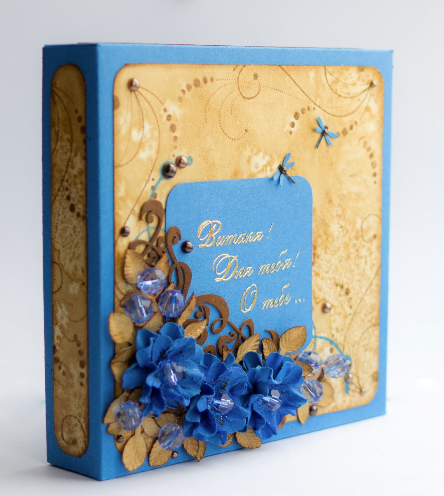 Заказала тут мне одна замечательная девушка подарок для своего любимого мужчины. Сначала хотела делать толи книгу, толи блокнот с красивыми словами любви, но потом мне пришла в голову отличная идея:) Предложила сделать коробочку, в которой будут храниться карточки с фотографиями. Вот что у меня получилось: